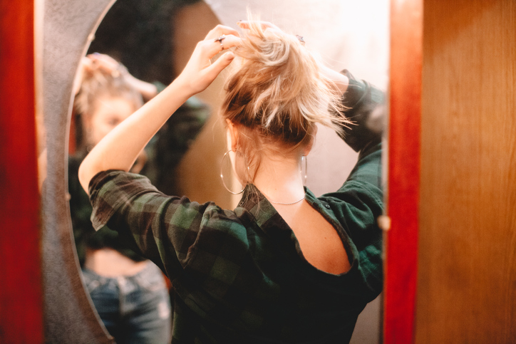 香水と同じで、髪をまとめるときに見える首筋はセクシーさの塊!しかも、髪の毛をあげるときは、うなじも見えてよりときめきを与えているんです。それに、髪を結ぶときの腕の角度はとっても魅惑的。首筋、うなじ、二の腕のトリプルアタックです!